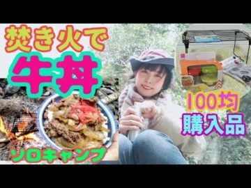 【ソロキャンプ】陰キャぼっち女 焚き火で牛丼作り&100均購入品試してみた結果…【ダイソー】