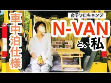 【N‐VANで女子ソロキャンプ】Nバン子車中泊仕様にチャレンジしました!これで梅雨シーズンも怖くない♪でもやっぱり車中泊でもポンコツです😁ドタバタキャンプはちきんちゃんねる、ビール片手に観てね♪