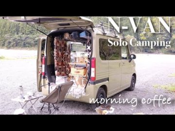 【N-VAN】車中泊キャンプで朝のコーヒータイム【女子ソロキャンプ】