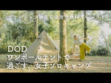 【キャンプ女子】DODワンポールテントで湖畔キャンプ!初心者キャンパーでも簡単設営テント![無料キャンプ]