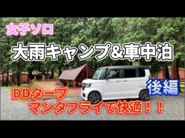 【ソロキャンプ女子】大雨キャンプ&車中泊 DDタープ マンタフライで快適‼︎後編