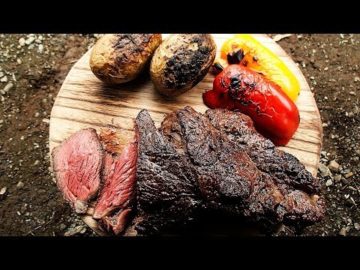 ソロキャンプ料理 ステーキとガーリックライス Camp Cooking Steak, Garlic Rice after the rain