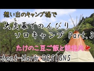 【ソロキャンプ女子】想い出のキャンプ場で 大炎幕でのんびりソロキャンプ Part.3 たけのこ豆ご飯と朝焼肉