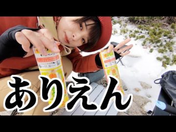 【女子キャンパー】雪積もる標高2956mで棒ラーメンを私流アレンジ【キャンプ料理】