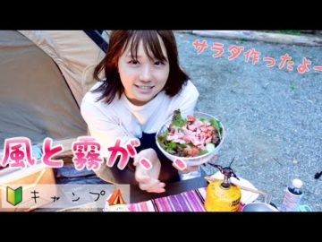 【キャンプ飯】【キャンプ女子】風と霧のなかのテント泊!夜ごはんにベーコンサラダ作って食べました☺️うまし!!!!