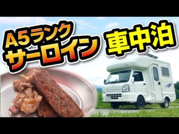 【軽キャン車中泊】A5ランクのサーロイン炭火焼きが最高すぎた。