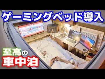 【車中泊】軽キャンピングカー至高のレイアウト完成!ゲーミングベッド仕様でリモートワーク、車中飯オール電化で過ごす