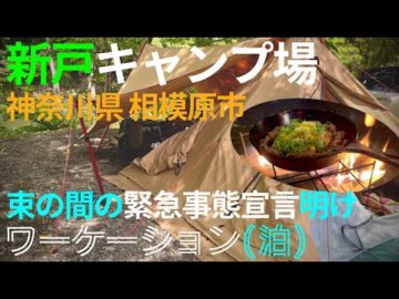【ソロキャンプ】新戸キャンプ場 束の間の緊急事態宣言明け 雨にも負けずワーケーション1泊〜パンダTCプラス 乾燥撤収に向けて形態変化