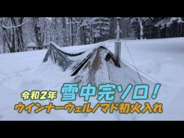 薪ストーブ雪中ソロキャンプ(パンダTCでウィンナーウェルノマド初火入れ♪)Winter Camping #95