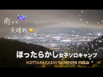 【ソロキャンプ】ほったらかしキャンプ場で雨の中テント設営女子ソロキャンプsolo camping Hottarakashi has a very beautiful night view