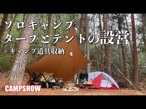 【ソロキャンプ】初心者向けにムササビウイングとMSRエリクサー2の設営方法、キャンプ道具の収納箱を紹介します。ソロキャンプでおすすめのタープとテントでサイト設営。